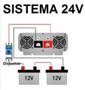 - Diagrama de ligação: Bateria 24 V → Inversor 4000 W → Régua de tomadas → Utensílios elétricos.