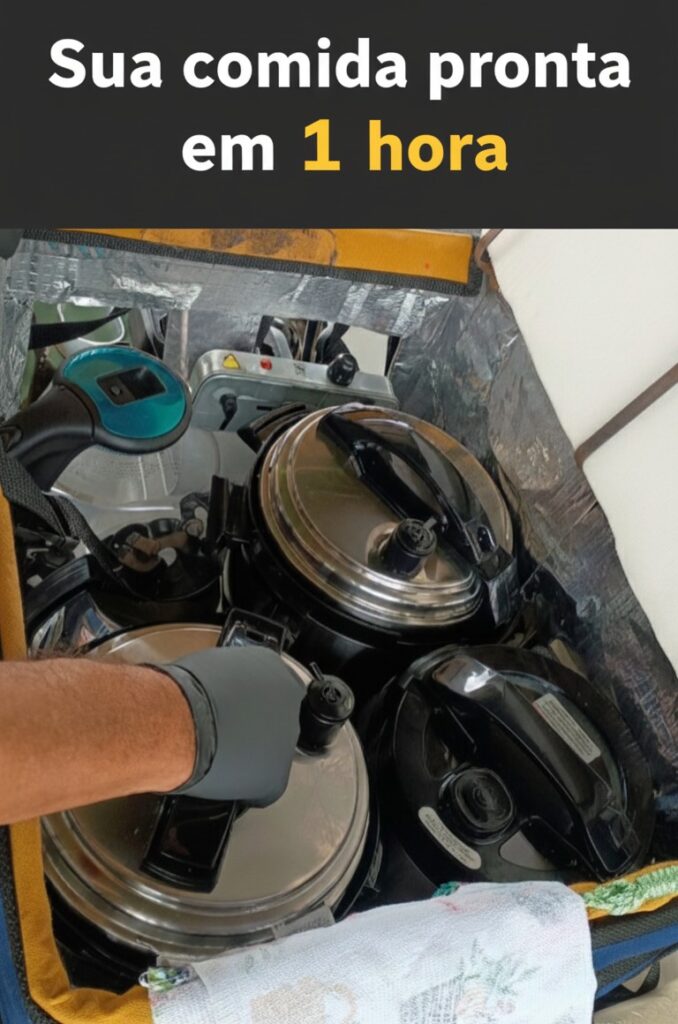 Em poucos minutos, você conecta a bolsa, escolhe sua panela e aperta o botão. Pronto. Enquanto você dirige, a comida fica pronta. A Gomescook trabalha enquanto você segue seu destino. E o melhor: sem bagunça, sem sujeira, sem dor de cabeça.